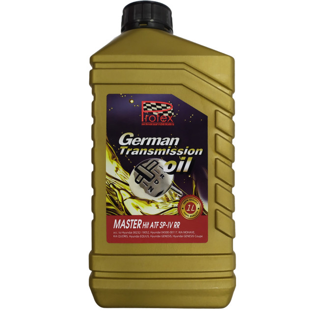 Profex Master Hit ATF SP-IV RR - синтетична трансмісійна рідина, аналог фірмових рідин Hyundai 00232-19052 і 04500-00117. Спеціально розроблена для використання в сучасних 8-ми ступінчастих автоматичних трансмісіях виробництва KIA і Huyndai, що вимагають від трансмісійної оливи відповідності допуску SP-IV RR. Під час виробництва враховувалися всі конструктивні особливості автоматичних трансмісій, що встановлюються в автомобілі Kia і Hyundai, зокрема в KIA MOHAVE, QUORIS, Hyundai EQUUS і GENESIS (+ версія Coupe).